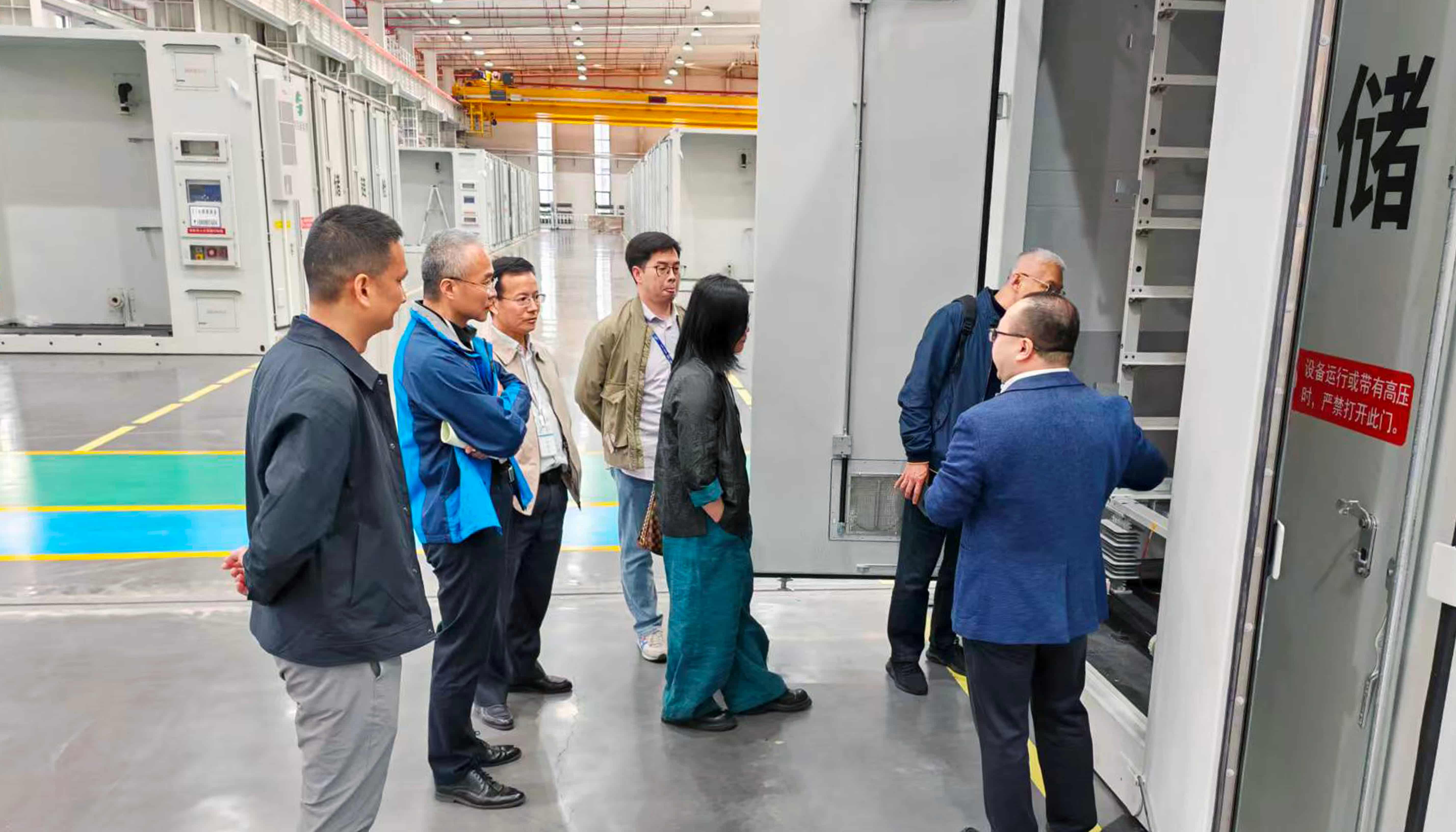 领导们实地参观了智光永和园区储能集成车间、PACK生产线及电力电子车间,详细了解级联型高压大容量储能系统和大功率电力电子技术的原理、生产工艺与应用成果,对园区以自动化装备、数字化管理系统打造的智能零碳生产模式予以认可。